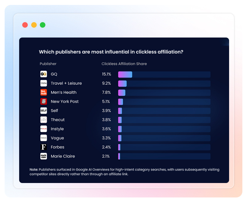 Google’s generative AI summaries surface product advice at the very top of search results. When those summaries feature affiliate content, shoppers often go directly to brand sites. They skip referral links and don’t receive credit for the influence that started the journey.