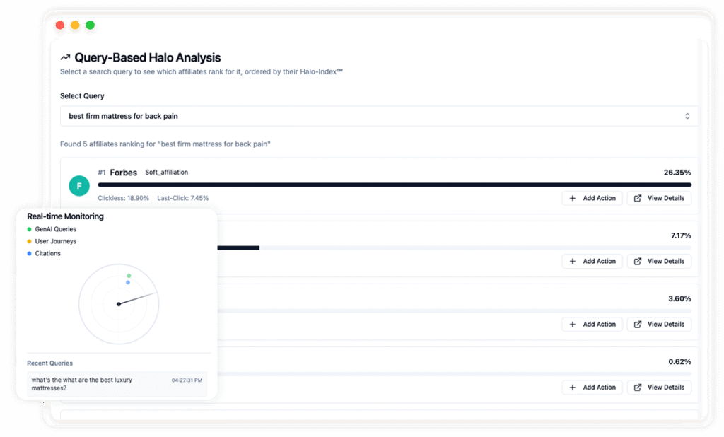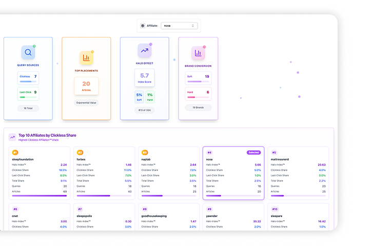 It scans AI-generated answers to identify when publisher content is surfaced. It tracks the consumer journey to show when AI discovery contributes to conversion. It links that exposure to verified purchases at the SKU level. And HaloIndex™ quantifies the influence for each publisher, brand, and category, establishing a verifiable currency for the zero-click economy.